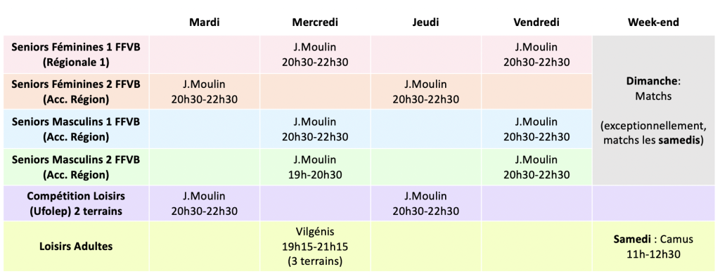 Ecole de volley – Créneaux / Tarifs 2025-2026